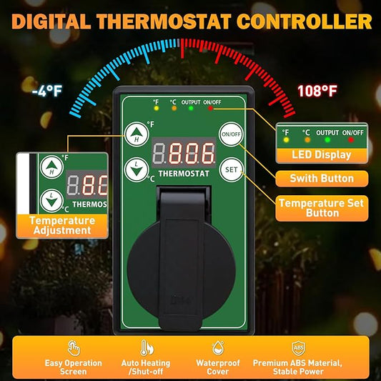 Greenhouse Heater with Digital Thermostat, 1500W Electric Outdoor Heaters for Patio, Fast Heating, Overheat Protection, Dustproof Design for Grow Tent, Green House, Flower Room, YE