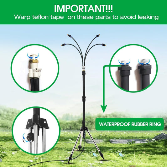 UR Forest Updated Standing Misting Cooling System 26FT Misting Line + 4 Brass Misting Nozzles,4 Height Option, Stand Mister Hose for Outside Outdoor Patio, Pet Cooling, Kids Water Playing