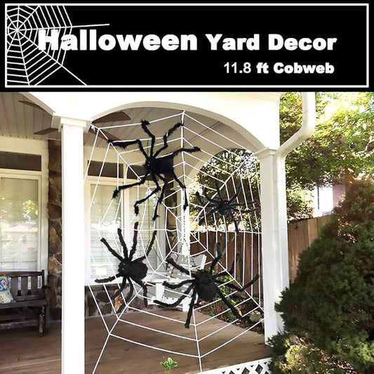 276" Halloween Spider Web 59" Giant Spider Decorations 20 Fake Spiders with Triangular Huge Spiders Web for Yard Lawn Garden Patio Scary Outside Decor-Indoor Haunted House Prop Party Halloween Décor