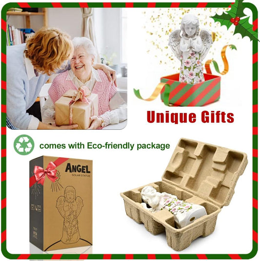 Nacome Garden Outdoor Statues Angel with Succulent and 7 LED Lights – Lawn Decor for Patio, Balcony, Yard Ornament - Unique Housewarming Gifts