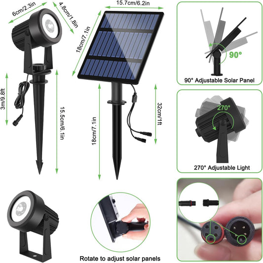 Solar Spotlights Outdoor 2Pack Warm White Auto Dusk to Dawn Landscape Lights, IP65 Waterproof Solar Lights for Garden Yard Path 2-in-1 Ground or Wall Mount