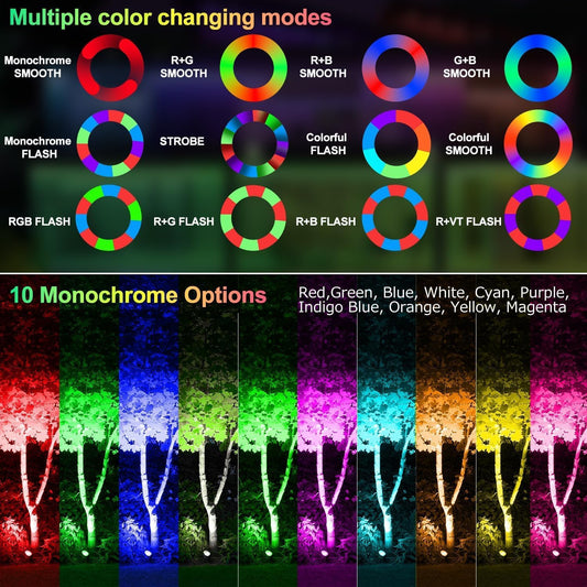 RGB Solar Spot Lights Outdoor 4Pack Color Changing Landscape Lighting IP65 Waterproof Auto Dusk to Dawn SpotLights Christmas Decorative Lighting for Garden Yard Pathway