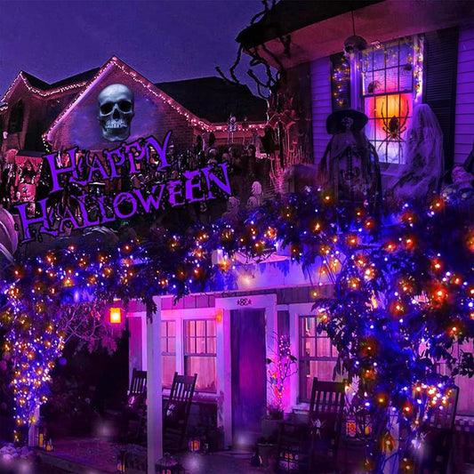 2 Pack 400 LED Solar String Lights, 8 Modes Solar String Lights for Outside, Waterproof and Solar Powered Outdoor String Lights for Holiday Christmas Yard Garden Tree Wedding Party (Orange Purple)