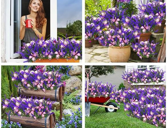 Solar Garden Lights Outdoor, 4 Pack Purple Lavender Solar Butterfly Lights Gardening Gifts for Women,Artificial Flowers Light Purple Halloween Garden Decor for Patio Yard Lawn Christmas