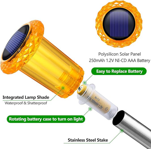 DenicMic Solar Lights Outdoor 15 Pack Waterproof 3000K Warm White LED Acrylic lamp Head Stainless Steel Stake for Landscape Lighting Path Walkway Sidewalk Backyard Patio Decor