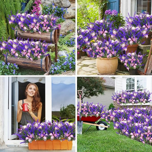Solar Garden Lights Outdoor, 6 Pack Purple Lavender Solar Butterfly Lights Gardening Gifts for Women,Artificial Flowers Light Purple Halloween Garden Decor for Patio Yard Lawn Christmas