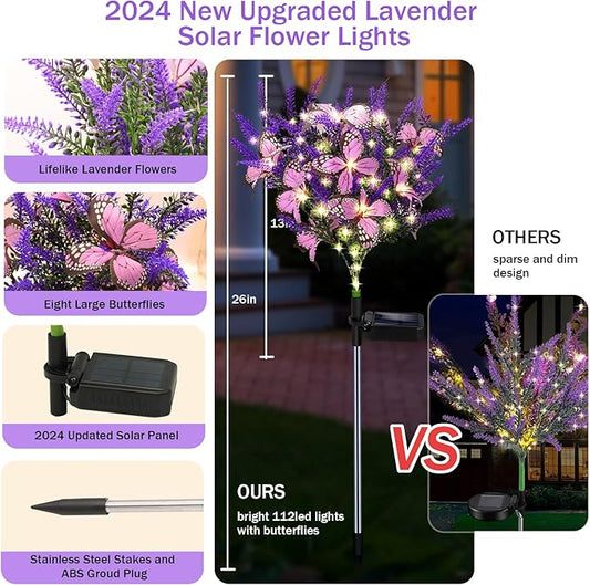Solar Garden Lights Outdoor, 2 Pack Purple Lavender Solar Butterfly Lights Gardening Gifts for Women,Artificial Flowers Light Purple Halloween Garden Decor for Patio Yard Lawn Christmas
