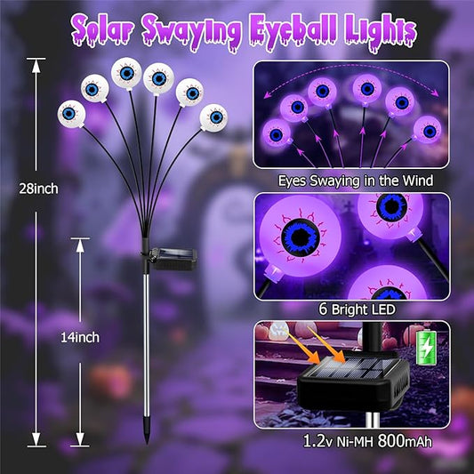 Purple Halloween Decorations Outdoor, 8 Pack 48 LED Solar Scary Eyeball Swaying Lights, Purple Solar Firefly Light Waterproof Outdoor Garden Lights for Halloween Yard Garden Lawn Party Flower Bed