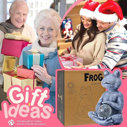 Goodeco Frog Statue with Solar Gazing Ball Lights - Zen Garden Statue for Outdoor Decor, Frog Gifts for Women & Moms, Housewarming Gifts