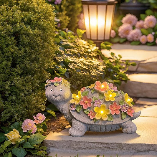 Solar Turtle Statues Garden Decor - Cute Turtle Figurine with Flowers Solar Lights, Tortoise Statue for Outdoor Yard, Lawn, Patio Decoration - Birthday Gifts for Mom Grandma Women