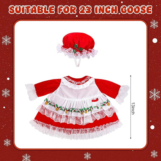 2 Pcs/Set Christmas Mrs. Claus Porch Goose Outfits, Lawn Goose Statue Mrs. Claus Costume, Red Green White Christmas Garden Goose Clothes Dress and Hat for 23" High Statue Xmas Holiday Patio Yard Decor
