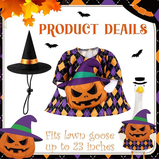 Sanwuta 1 Set Halloween Porch Goose Outfit Pumpkin Pillow Design with Witch Hat for 23" Lawn Cement Goose Porch Geese Clothes Costume for Halloween Garden Patio Yard Outdoor Decorations