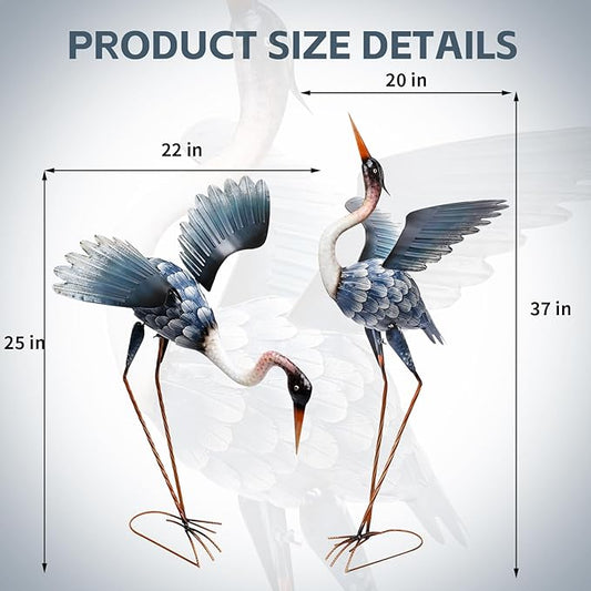 WONDER GARDEN Blue Heron Statue-Garden Statues for Outside - 2 Pack Crane Sculptures Statue, Metal Birds Yard Art for Pond, Patio, Outdoor, Porch Decor