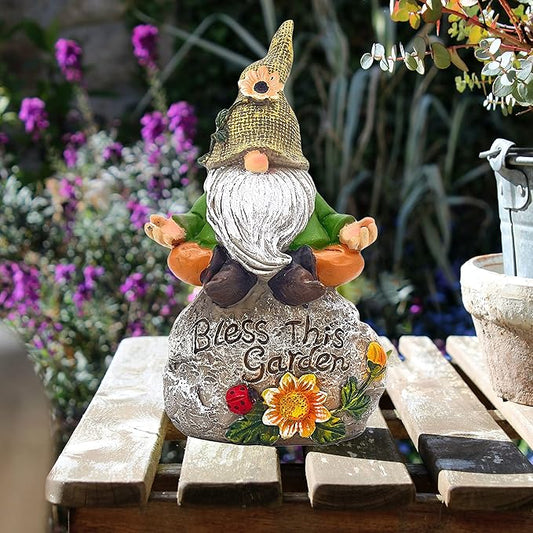 Galt International Bless This Garden Stone Meditating Garden Gnome Statue 8" - Hand Painted Décor for Outdoor Patio Lawn Ornaments Birthday Housewarming Gift