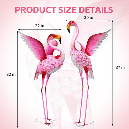 WONDER GARDEN Pink Flamingo Statue-Garden Statues for Outside - 2 Pack Flamingos Sculptures Statue, Metal Birds Yard Art for Pond, Patio, Outdoor, Porch Decor