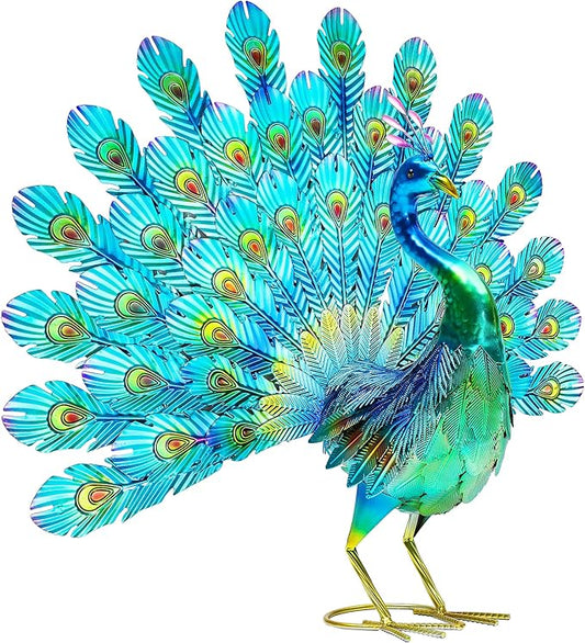 Autodaya 27.5" Tall Metal Peacock Garden Statue - Handmade, 3D Textured, Tail Spread Sculptures for Patio, Garden or Entryway.