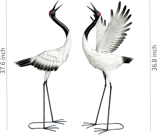 chisheen Crane Garden Statues Outdoor Metal Heron Yard Art Crane for Garden Sculptures Patio Lawn Ornaments,Set of 2
