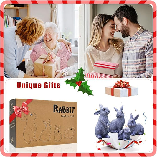 Nacome Bunny Statues for Fairy Garden Easter Decor: Outdoor Set of 4 Rabbit Table Sculptures for Clearance Outside Lawn Ornaments Porch Patio Balcony Yard – Gifts for Mom Grandma