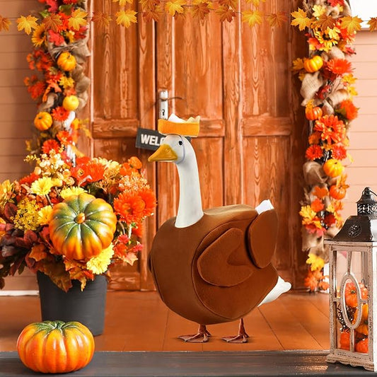 Outus Thanksgiving Turkey Goose Outfits Funny Turkey Outfit for Porch Goose 23inch Lawn Pumpkin Pie Geese Clothes for Plastic Cement Geese Thanksgiving Fall Outdoor Yard Garden Decor