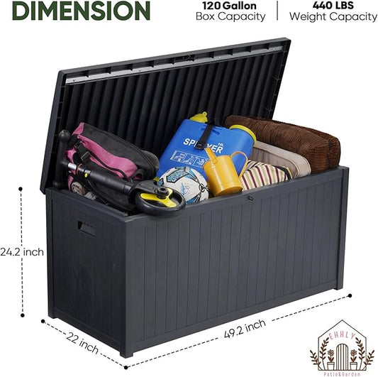 120 Gallon Outdoor Storage Box Large, Lockable Outside Containers Waterproof Patio Cushions Storage Deck Boxes, Plastic Garden Hose Boxes Resin Pool Storage Bins, Grey