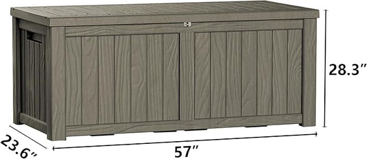 150 Gallon Waterproof Large Resin Deck Box Indoor/Outdoor Lockable Storage Container and Seating for Garden, Pool, and Patio (150 Gallon, Grey)