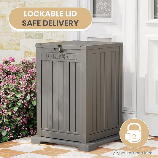 48 Gallon Outdoor Storage Box, Package Delivery Box for Outside with Lockable Secure, Resin Outside Storage Box Waterproof Deck Box for Patio & Pool, Grey