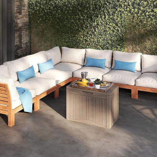 33GAL Brown Blow - Molded Outdoor Deck Box with Lockable Lid - Waterproof, SGS - Certified UV Resistance, Durable Construction for Garden Tool and Pool Accessory Storage, Simple Assembly