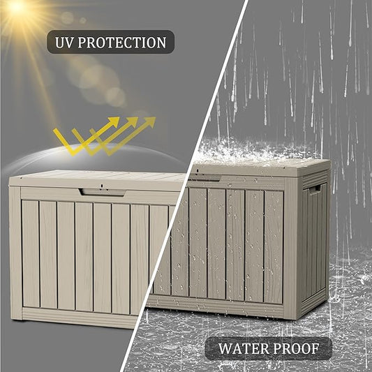 100 Gallon Outdoor Storage Box Waterproof, Resin Deck Box with Dual-Wall for Storing Gardening Tools, Pool Supplies, And More