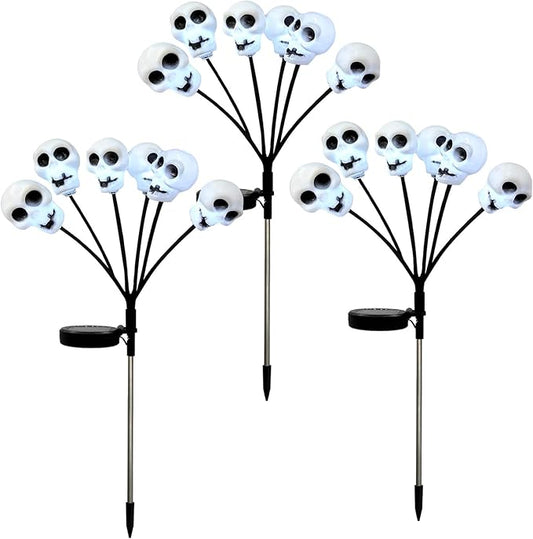 Solar Halloween Pathway Lights 3 Pack Skull Stake Lights Outdoor 2 Modes Cool White LEDs for Garden Yard Patio