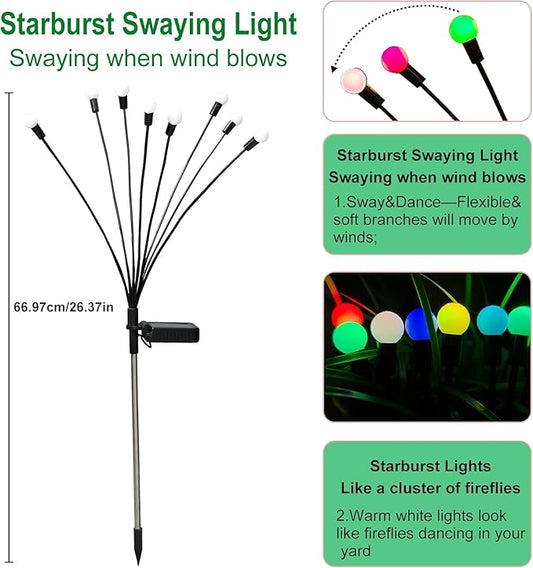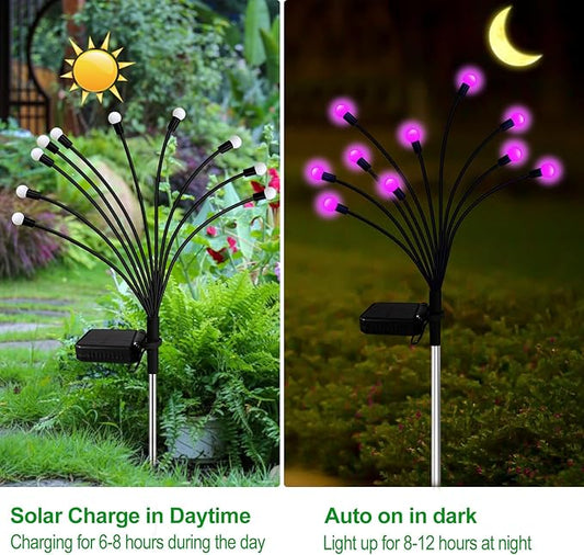 Solar Garden Lights Outdoor, 2 Pack 20 LED Solar Firefly Lights Waterproof, Sway by Wind, Swaying Light for Yard Patio Backyard Garden Planter Flower Bed Pathway Outdoor Decoration (Multicolor)