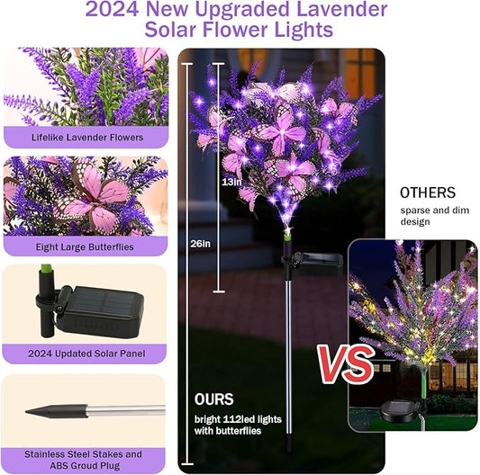 Solar Garden Lights Outdoor, 6 Pack Purple Lavender Solar Butterfly Lights Gardening Gifts for Women,Artificial Flowers Light Purple Halloween Garden Decor for Patio Yard Lawn Christmas