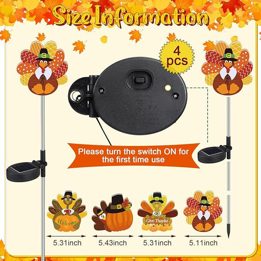 Retisee 4 Pack Thanksgiving Turkey Outdoors Cute Solar Lights Multicolor Patterned Solar Waterproof Lights Outdoor Yard Decorations Pathway Lawn Porch Fall Party Supplies for Home Yard Party Favors