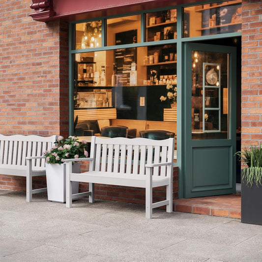 Garden Benches Set of 2, All-Weather HIPS Outdoor Bench with 800 lbs Weight Capacity, Never Rot or Fade, for Garden, Porch, Backyard, and Park, White