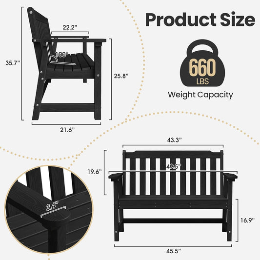 Ciokea 46" Heavy Duty Outdoor Bench Set of 2, HDPE Weatherproof Garden Bench, 2-Person Memorial Benches with 660 Lbs, Waterproof Patio Porch Benches for Outside Business Deck Office Backyard, Black
