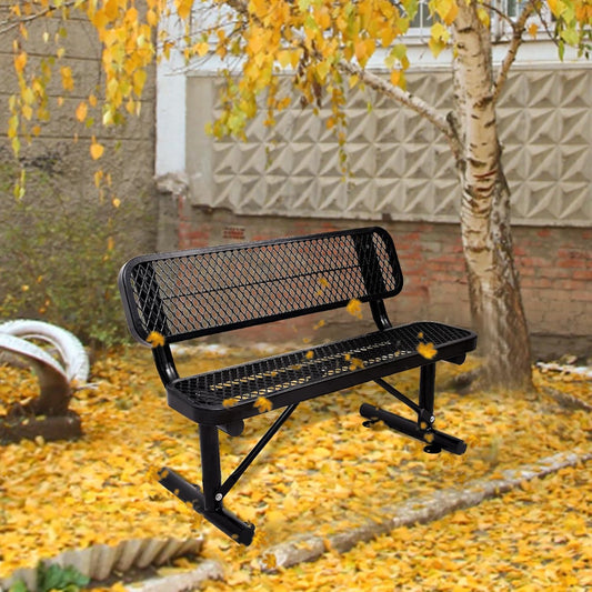 4FT Heavy Duty Park Bench with Back Portable Frame, Outdoor Metal Park Bench with Backrest, Steel Mesh Outdoor Bench for Garden, Lawn, Patio, Porch, Park, Yard (Black, 48" D x 23.2" W x 32.5" H)