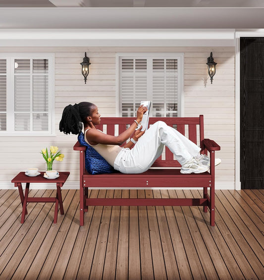 SERWALL Outdoor Bench, HDPE Outdoor Benches Weatherproof, 2-Person Garden Bench with 660 lbs Weight Capacity, Patio Benches for Outdoors, Garden, Porch, Backyard and Park, Red