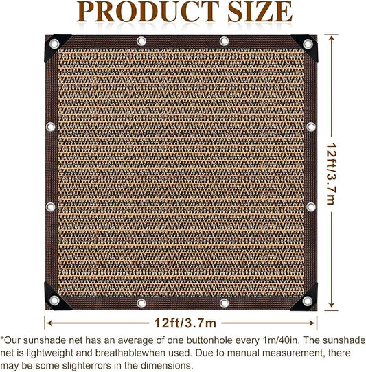 80% Sunblock Shade Cloth Net Resistant - 12x12Ft Garden Shade Mesh for Plant Cover, Greenhouse, Chicken Coop, Kennels, Tomatoes Plants