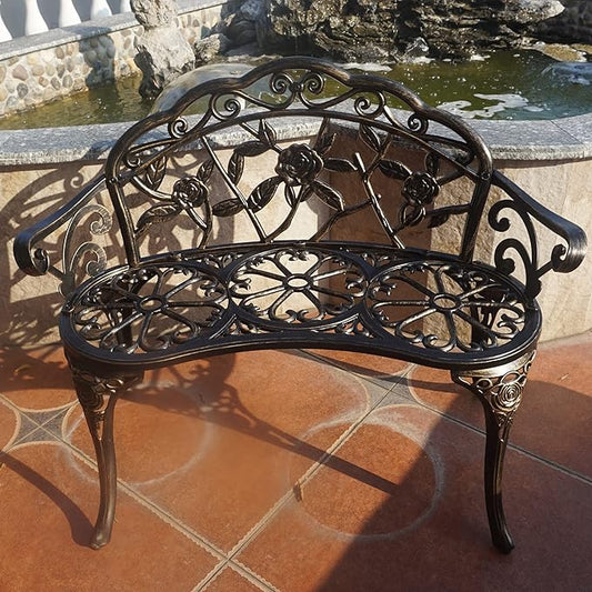 KAILI Garden Bench, Metal Aluminum Rose, Suitable for Garden Porch Park Front Porch Balcony Outdoor (Bronzed)