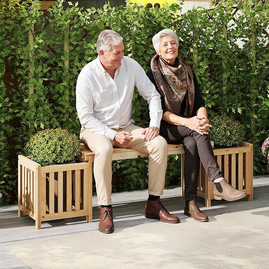 Giantex 2-in-1 Outdoor Bench with 2 Raised Garden Beds, Planter Boxes with Open-Ended Base, Garden Bench Seat for Porch Balcony Lawn Yard, DIY Assembly, Natural