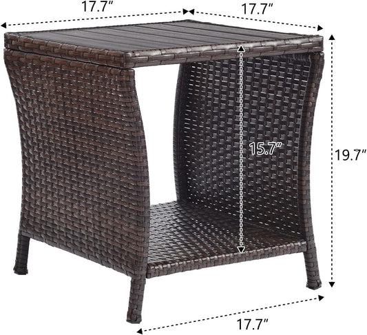 Outdoor Side Table for Patio Small Rattan Wicker Coffee Table Balcony Table Outside End Table with Poly Lumber Table Top & Storage Bistro Table for Garden Porch Deck Living Room Backyard Brown