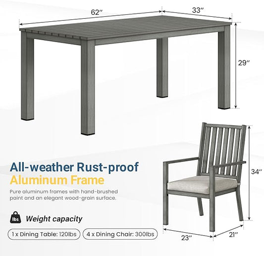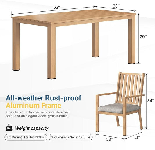 Wisteria Lane 5 Pieces Patio Table and Chairs Set, Aluminum Outdoor Dining Table with 4 Chairs, Outdoor Patio Dining Sets with Removable Cushion for Garden, Backyard, Lawn, Brown
