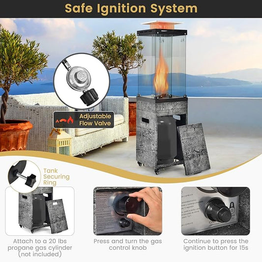 Pyramid Patio Heater,48,000 BTU Outdoor Propane Heater with Glass Tube, Propane Tall Tower Design with Wheels & One-Button Ignition for Backyard, Deck, and Commercial Use