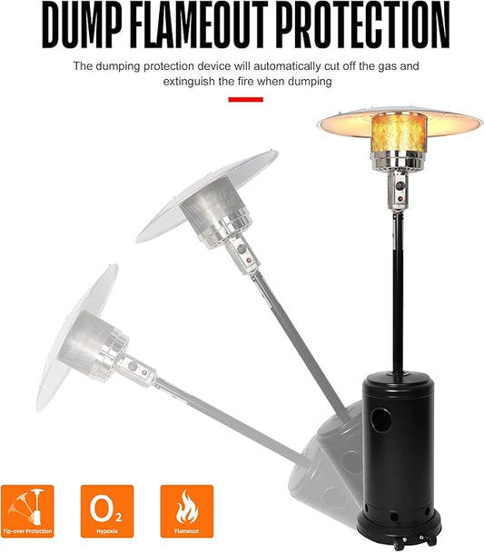 48,000 BTU Outdoor Propane Patio Heater with Wheels, Commercial & Residential, Black