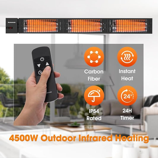 ThermoMate Infrared Outdoor Patio Heater, 4500W Carbon Fiber Heating for Porch, Deck, Garage with Remote 24 Hours Timer, Hard Wired 240V