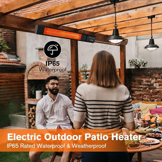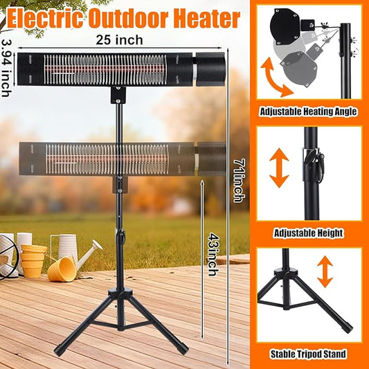 Electric Patio Heater Outdoor 1500W Carbon Infrared Heater with Remote Timer 3 Heat Levels IPX4 Waterproof Tripod Stand Ceiling Wall Mount for Backyard Restaurant Garage
