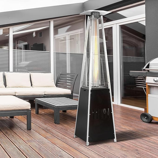 Nuu Garden 48,000 BTU Pyramid Patio Heater, Outdoor Propane with Quartz Glass Tube and Wheels, Hammered Bronze Tower for Terrace and Garden, Black