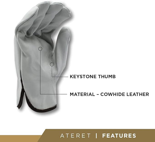 12 Pairs Heavy Duty Durable Cowhide Leather Work Gloves for Construction, Industrial and Personal Use