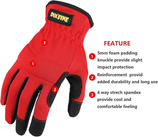 DULFINE Work Gloves for Women,Flexible Breathable Fit-Padded Knuckles & Palm,Touch Screen,Ideal for Gardening Yardwork Warehouse