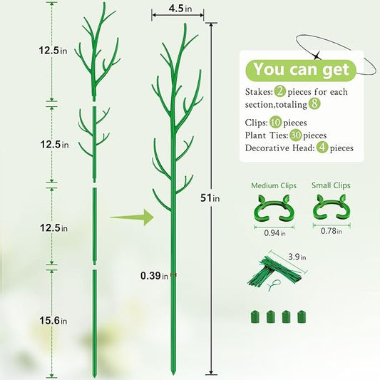 Plant Support Stakes,Adjustable Height Branch Shape Plant rods for Small &Medium Monstera 2 3 4 Fee Tall Support Sticks for Climbing Plants,Garden Accessories,Alternative to Moss Poles,2 Sets 51"