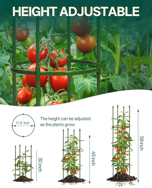 Breeze Touch 3 Pack Tomato Support Cages, Up to 59 Inch Adjustable Tomato Trellis for Garden & Pots, Garden Trellis for Climbing Plants Outdoor, Plant Trellis for Climbing Vegetables, Flowers, Beans
